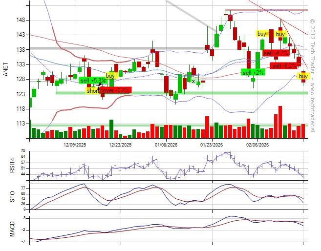 $ANET at $132.72 (-6.1%).