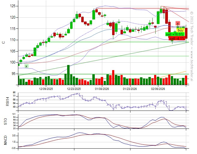 From @Grok (API): "Exit long to cash as price breaks below key 115 support on high volume amid bearish 2026 guidance and rate jitters, signaling further downside despite oversold conditions."