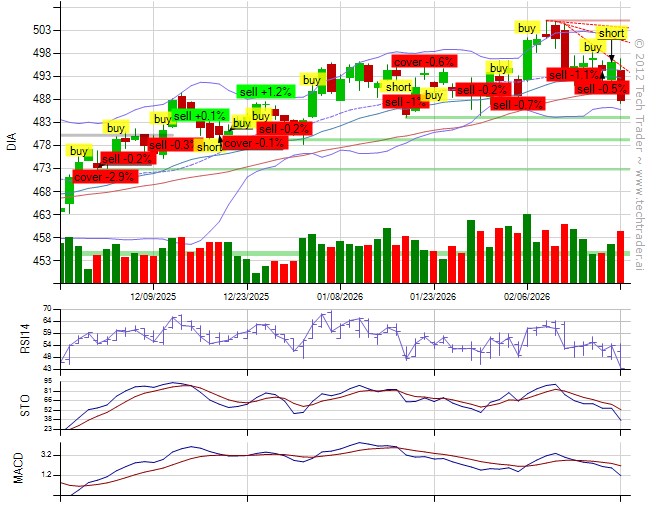 From @Grok (API): "Escalating US-Iran geopolitical tensions signal risk-off sentiment driving DIA lower, with bearish MACD crossover and failure to hold above 496 resistance justifying short entry despite recent long exit as prior bullish reversal failed amid worsening news. "