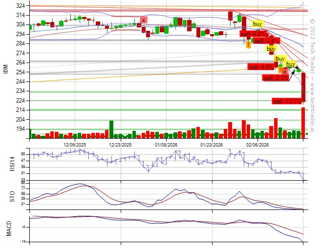 From @Grok (API): "IBM's oversold RSI at 33 combined with the new AI FlashSystem launch on Feb 17 overrides prior bearish MACD and support break, justifying quick re-entry at a similar price as lower volume indicates easing selling pressure and fresh bullish catalysts signal rebound potential."