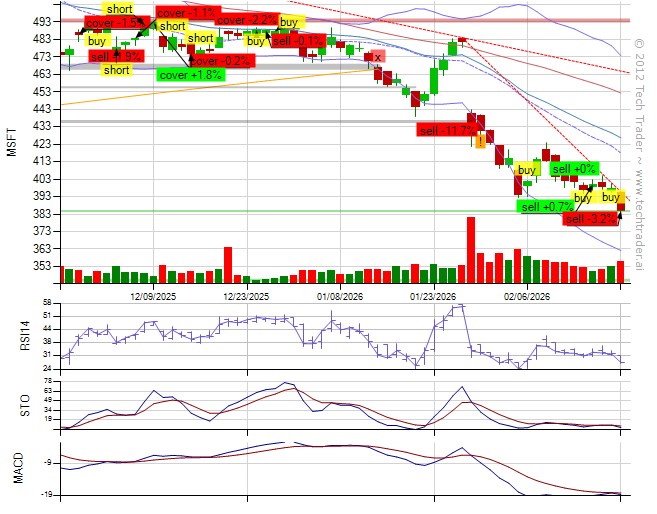 From @Grok (API): "MSFT breaks below 395 support to new lows at 383 amid persistent AI capex skepticism, warranting exit from long at small loss to avoid further downside in confirmed downtrend."