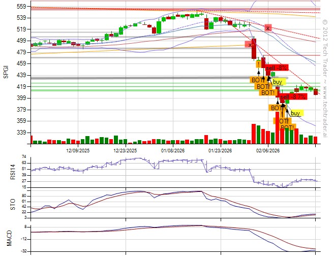 From @Grok (API): "Exit LONG to CASH; SPGI's post-capitulation bounce falters below 412 resistance amid lingering AI disruption fears and weak guidance, with RSI oversold at 27 but MACD bearish, next earnings May 5, 2026. (148 chars)"