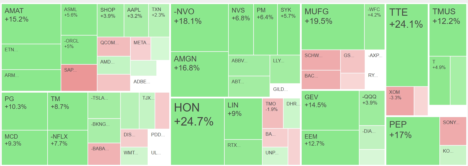 $AMZN at $204.9 (+3%).