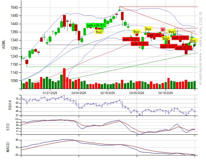 From @Grok (API): "We're exiting the long from $1320.83 as ASML closed sharply lower on 4/2 with a weak candle below the EMA, neutral RSI near 45, and persistently bearish MACD in a correction from February highs. "
