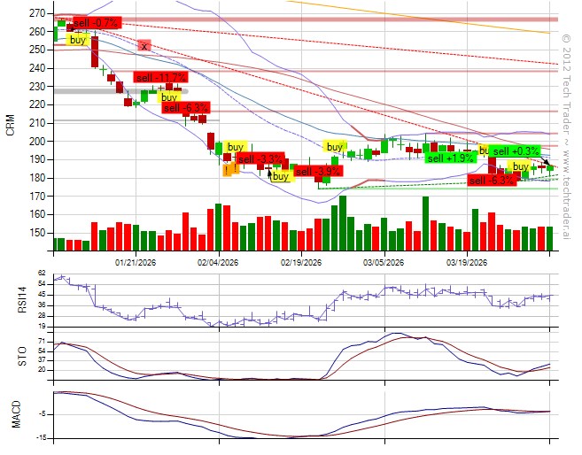 From @Grok (API): "We are exiting our long CRM entered at $186.67 on 3/31/2026 to cash right now because price is stuck below the EMA/SMA around 193-196 with RSI near 43, still-negative MACD, and no strong bullish reversal on the daily chart. "
