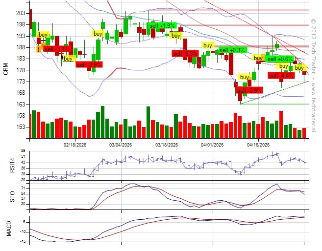 From Grok (API): "CRM is chopping around in a volatile downtrend with repeated failed bounces and no high-conviction setup for a 7+ day hold. "