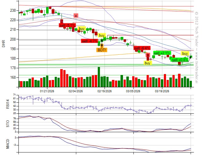 From @Grok (API): "DHR's existing long from $189.6 on 3/31 is up slightly but the stock remains in a clear downtrend well below EMA and SMA, with neutral RSI and mixed momentum, so we exit to cash now. "