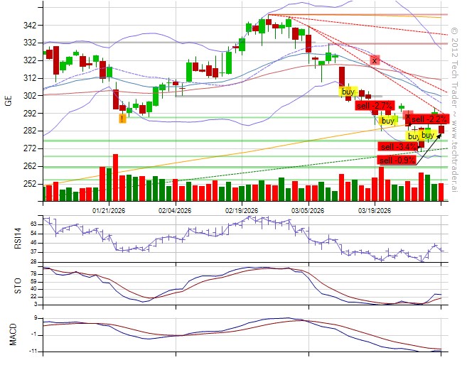 From @Grok (API): "We're exiting the long from $283.77 as GE broke lower again to $282 with price stuck below the 300+ EMAs, negative MACD, and no real bullish reversal on the daily. "