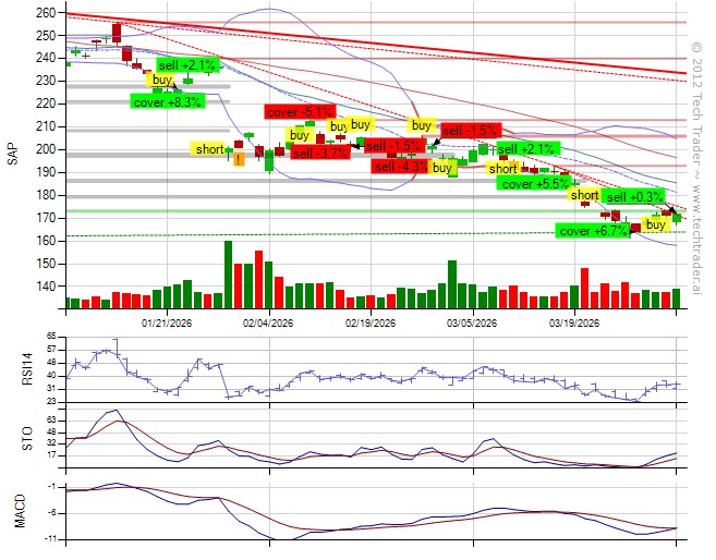 From @Grok (API): "SAP is stuck in a clear downtrend well below its declining EMAs and SMAs with still-negative MACD and only mildly rising RSI/stochastics, so exit the small long for cash ahead of potential earnings volatility. "