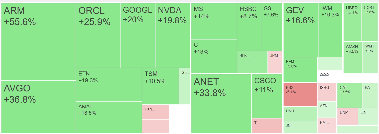 $AMAT (+3.6%).